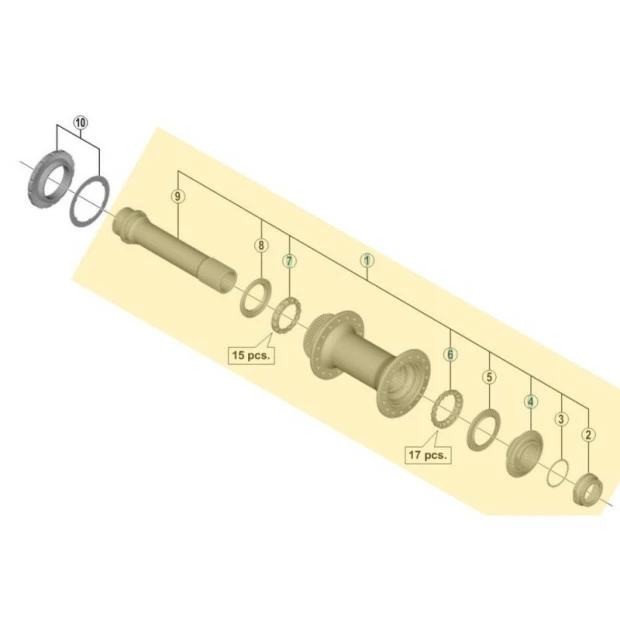 Axe complet de moyeu avant Shimano Deore XT HB-M8010